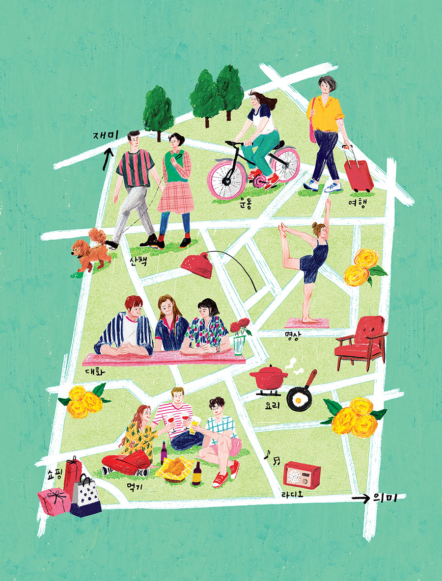 행복을 위한 활동들을 그렸고