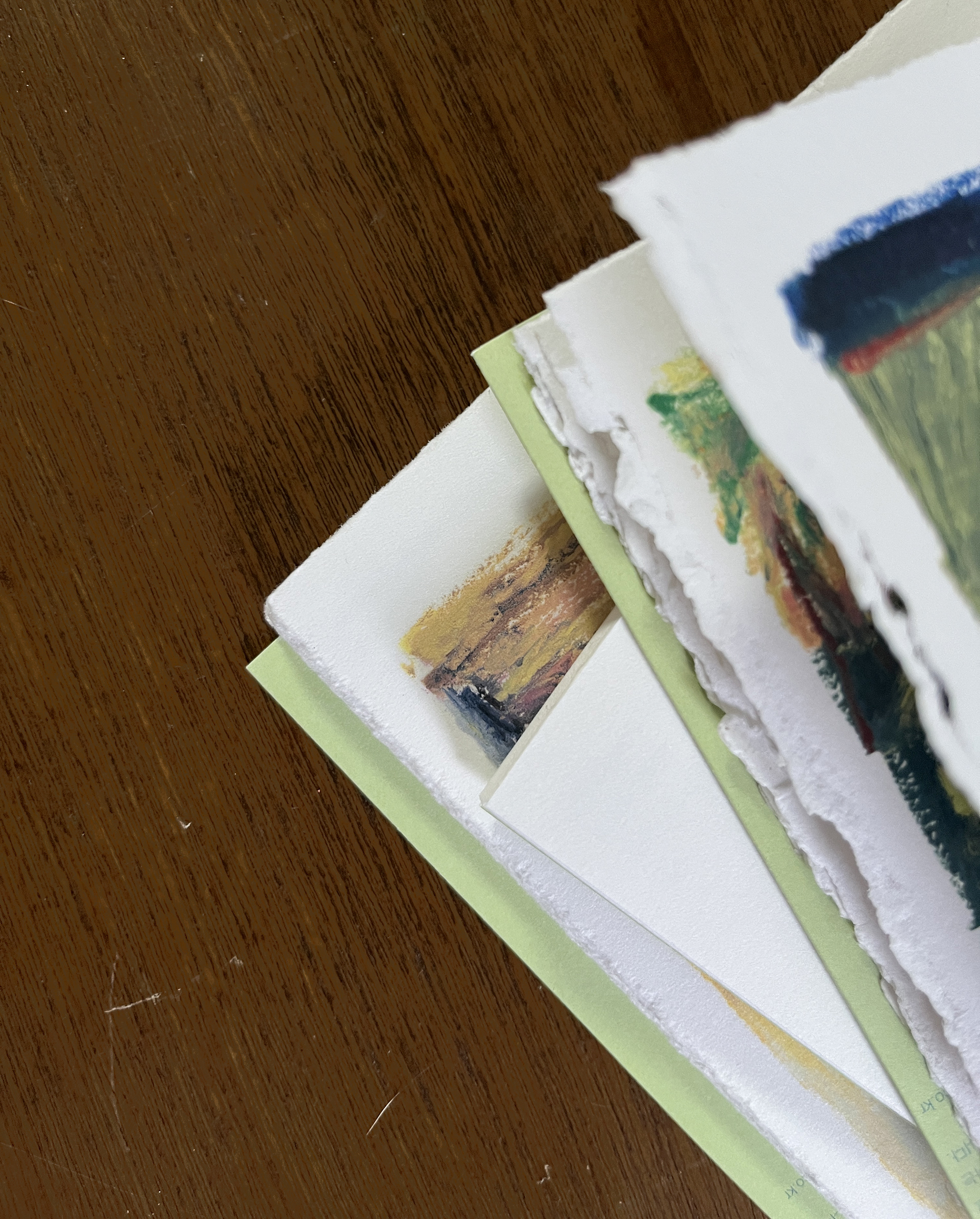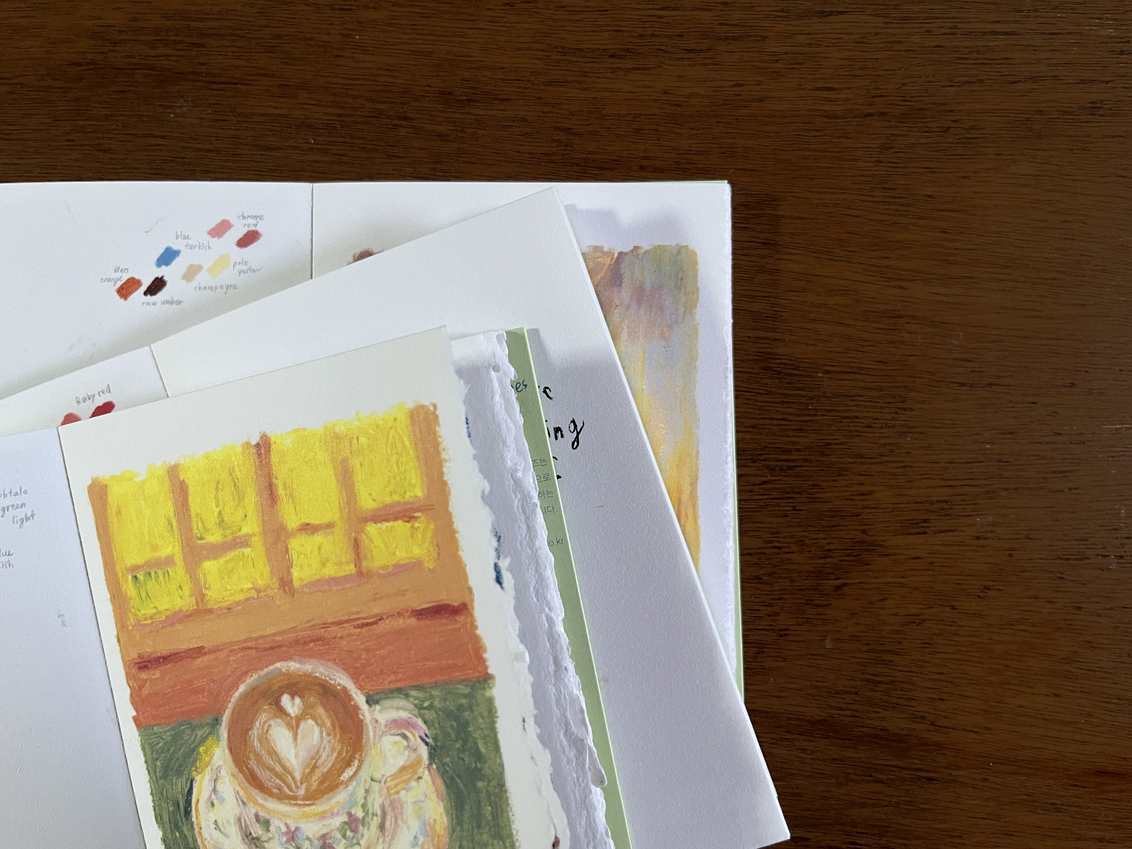 책상 위의 오일파스텔과 종이